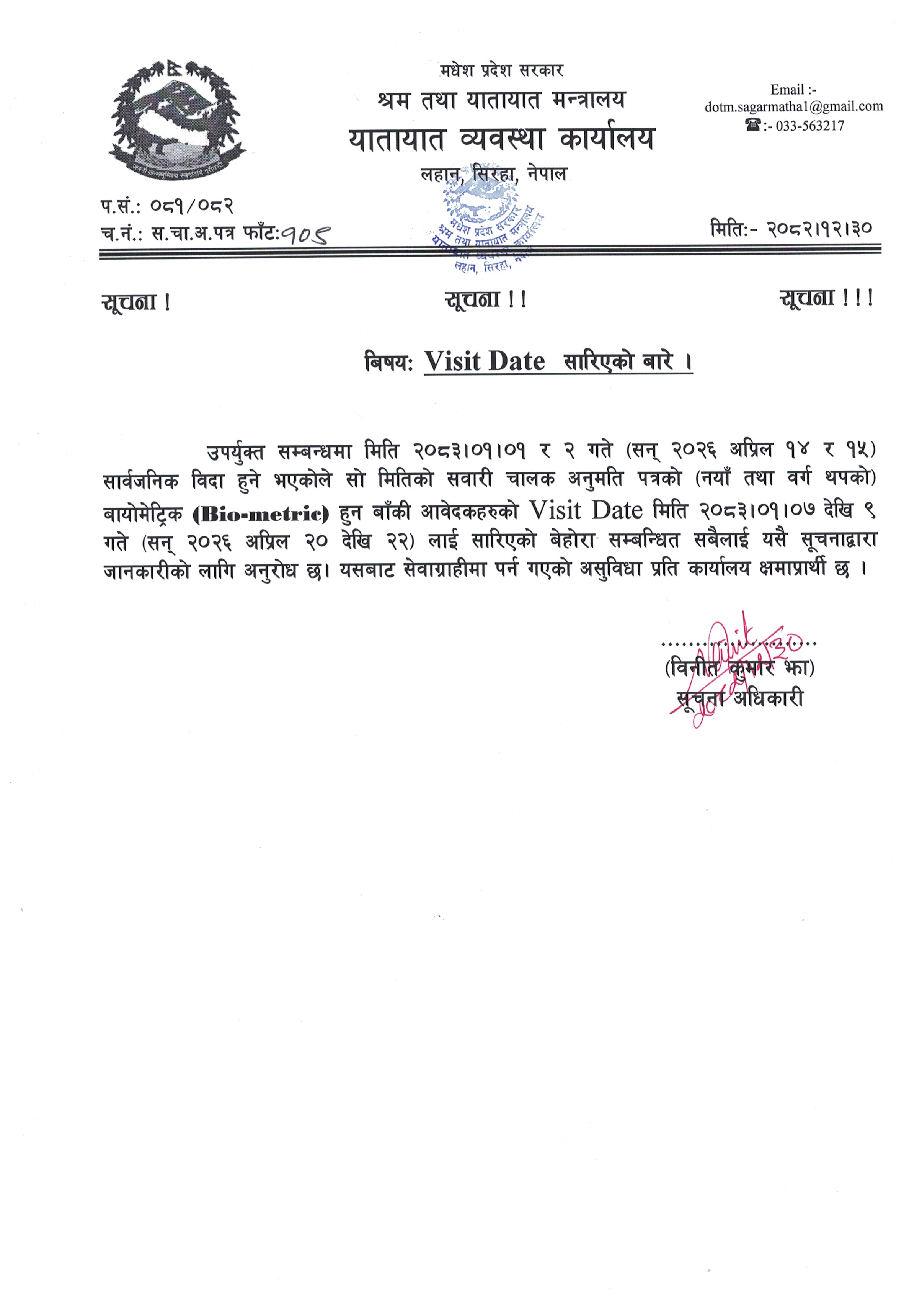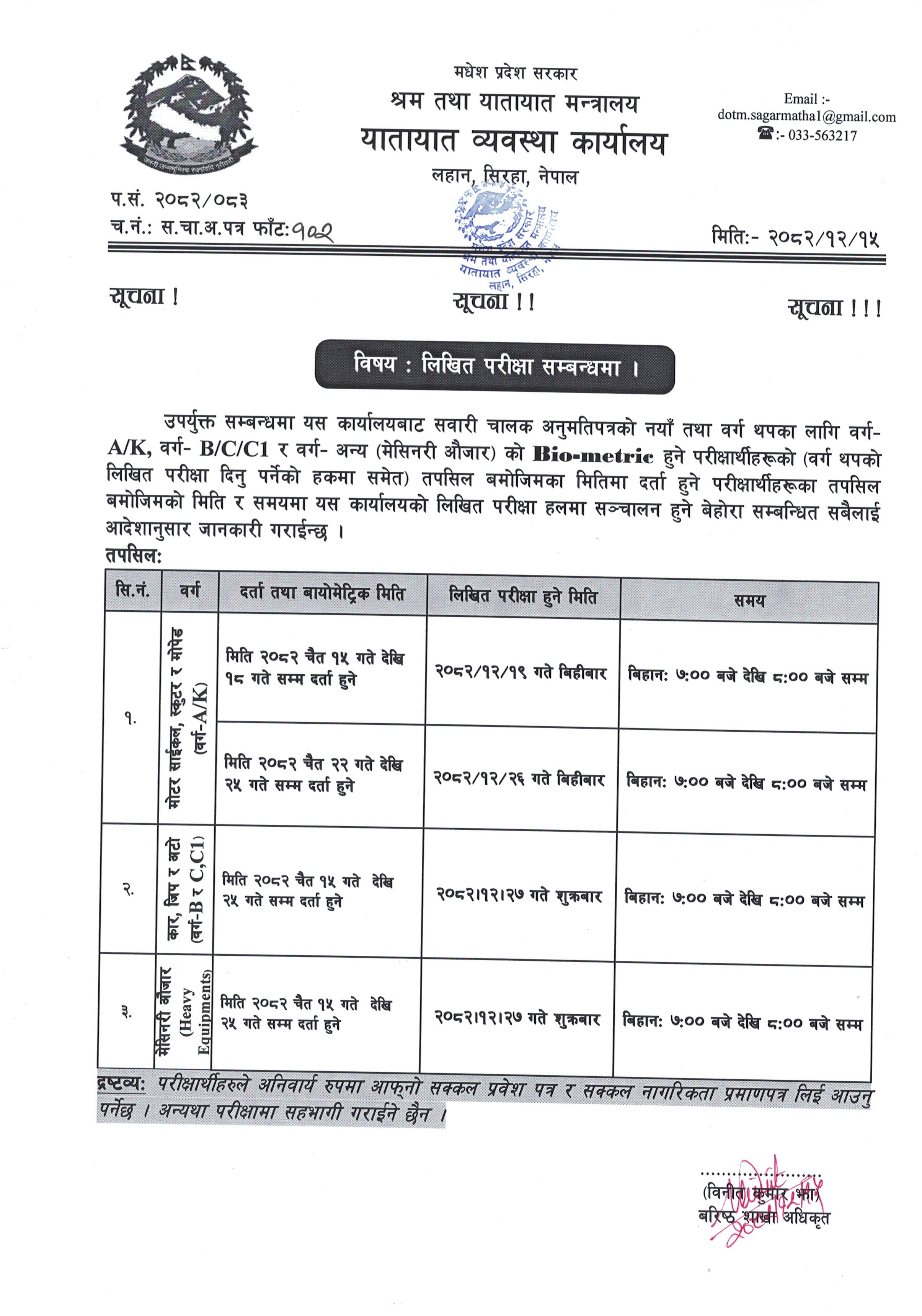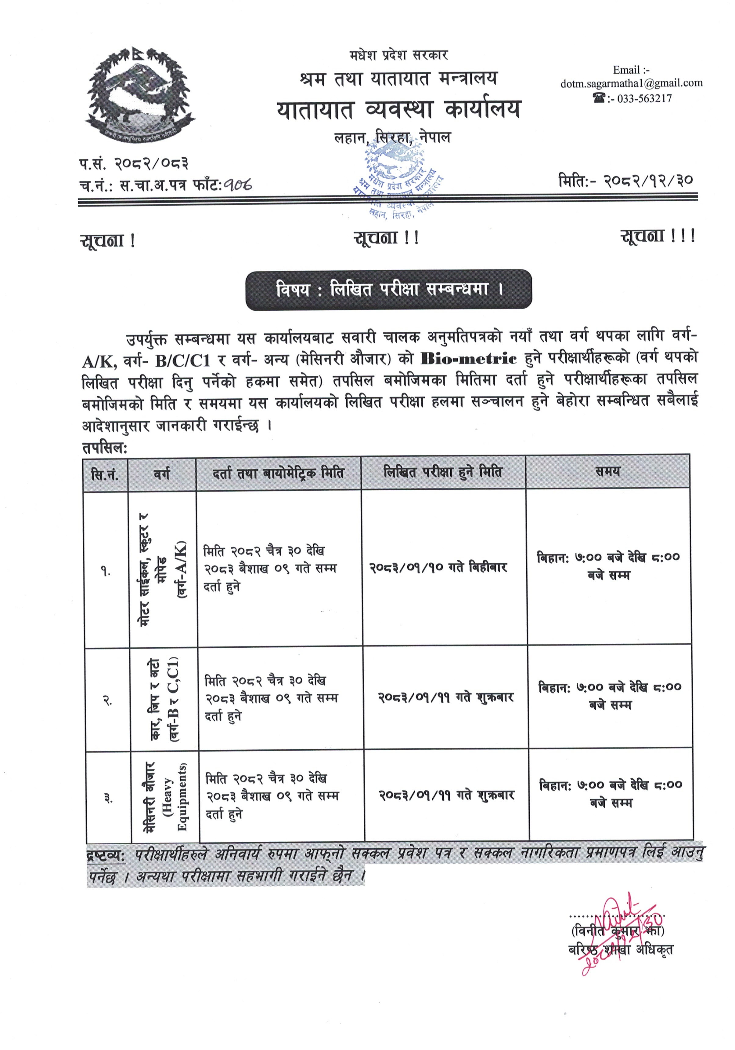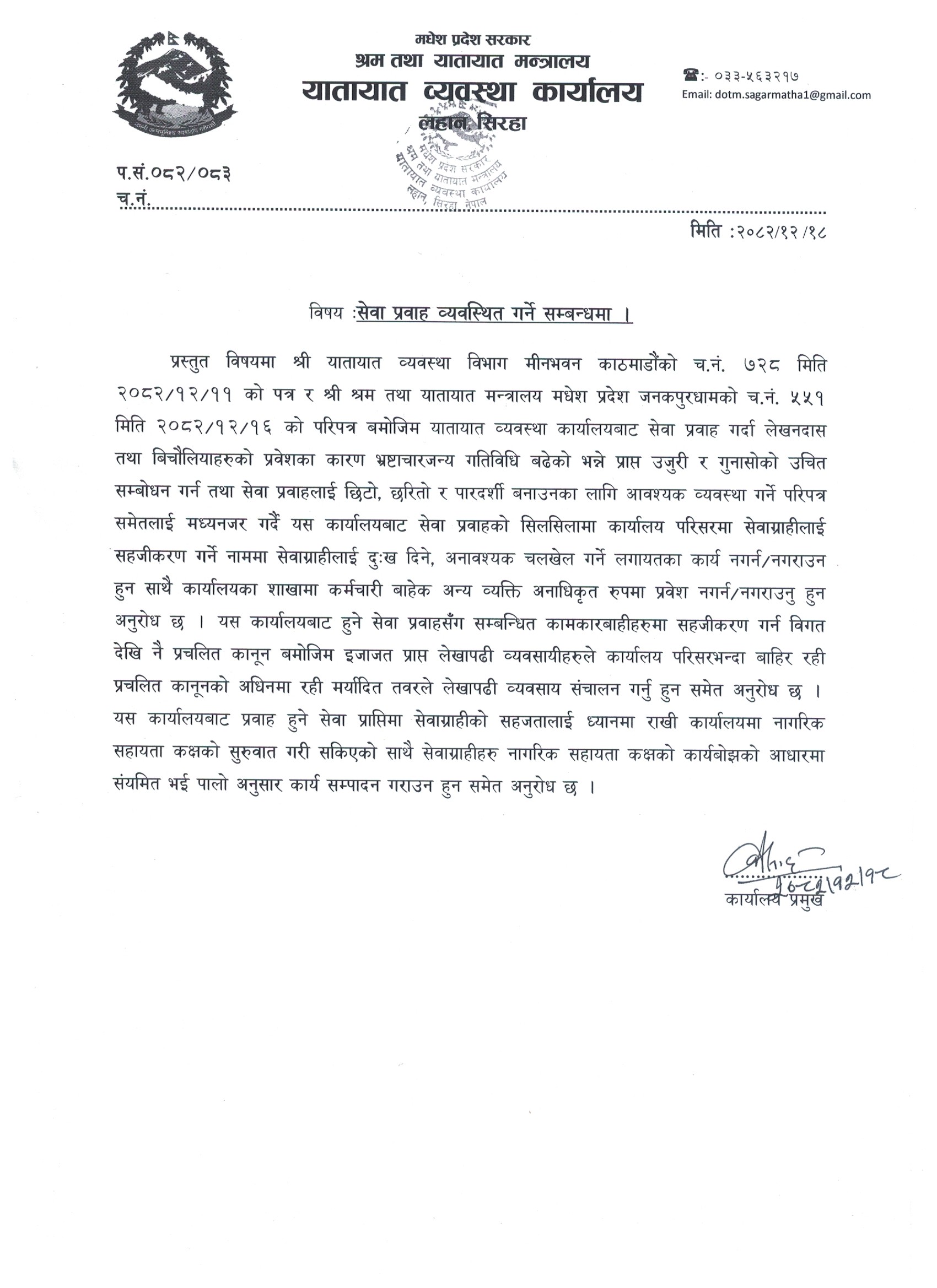 यातायात व्यवस्थापनको कार्य गर्नका लागि वि.सं. २०४१ मा यातायात व्यवस्था विभागको स्थापना भएको हो । यातायात व्यवस्था कार्यालय, लहान, सिरहा देश संघीय संरचना जानुभन्दा पहिला यातायात व्यवस्था सगरमाथा अञ्चल कार्यालय रहि करिब ६ वटा जिल्लाकै कार्यक्षेत्रमा सेवा प्रवाह गर्दै आएको थियो । वर्तमान संविधानको संवैधानिक व्यवस्था बमोजिम यातायात क्षेत्रको व्यवस्थापकीय भूमिका प्रदेश मातहत स्थानान्तरण भए मुताविक हाल देश भित्रका यातायात व्यवस्था कार्यालयहरु प्रदेश सरकार मातहत रहि प्रदेश सरकारको खटनपटन बमोजिम सवारी चालक अनुमति पत्र वितरण, कर दस्तुर संकलन लगायत यातायात क्षेत्र सम्बद्व अधिकांश व्यवस्थापकीय कार्यहरु भइरहेका छन् । हाल मधेश प्रदेश सरकार, श्रम त थप पढ्नुहोस्